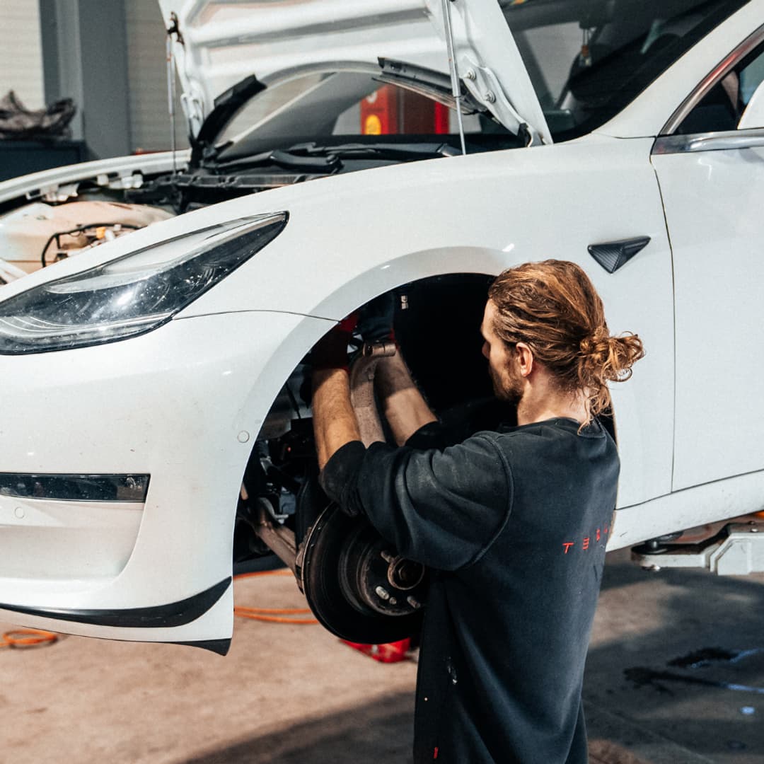 Service & maintenance We offer maintenance and service for all Tesla models outside of the manufacturer's warranty. This includes end-of-warranty checks, brake service, fluid changes, MFK preparation and safety checks. All work is documented and carried out in accordance with the manufacturer's specifications.